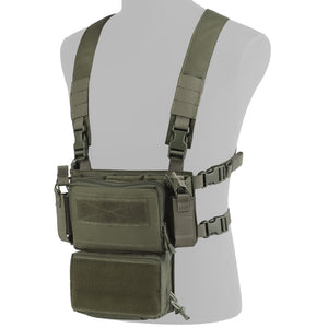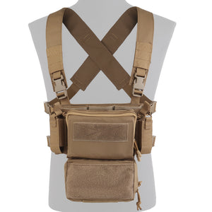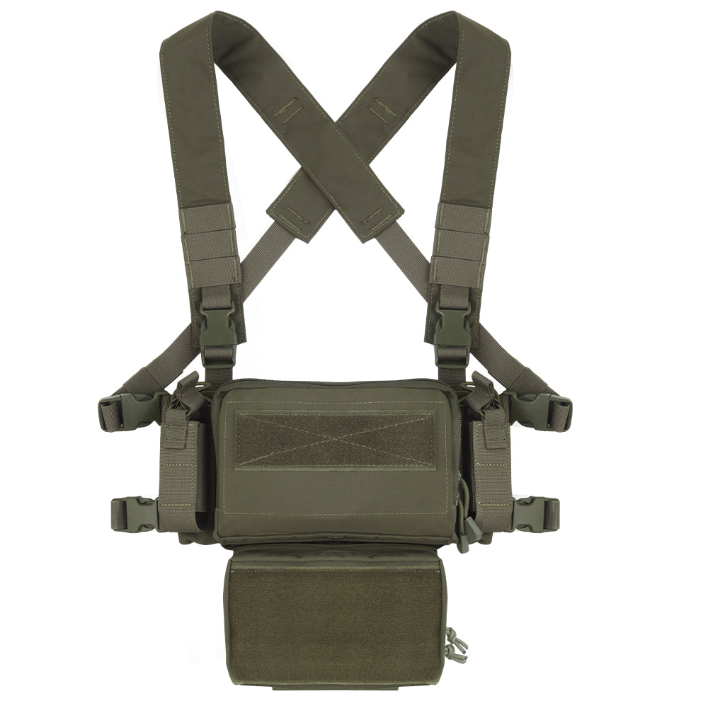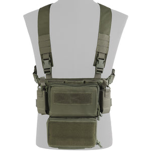 The Micro Chest Rig (D3CRM) was designed to be adaptive to any mission and every environment. When run as with a harness, the Micro maintains a low profile capable of being worn fully loaded under a normal/loose fit jacket or sweatshirt without overtly printing. When run as a placard on an armor platform with a quick release system, the chest rig can be attached or stowed in seconds giving the end user the versatility to transition from low vis to high vis or vice versa.