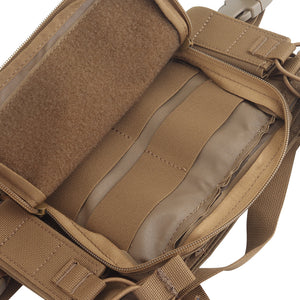 The back panel of the Micro includes a full field of Velcro Brand hook for secure attachment to plate carriers when ran as a placard. The Micro was disruptively engineered for direct integration with the Side Saddles, Multi-Mission Hanger, FlatPack and FlatPack Plus (no additional accessories required) providing operators the ability to expand and customize their kit to meet any mission requirement.