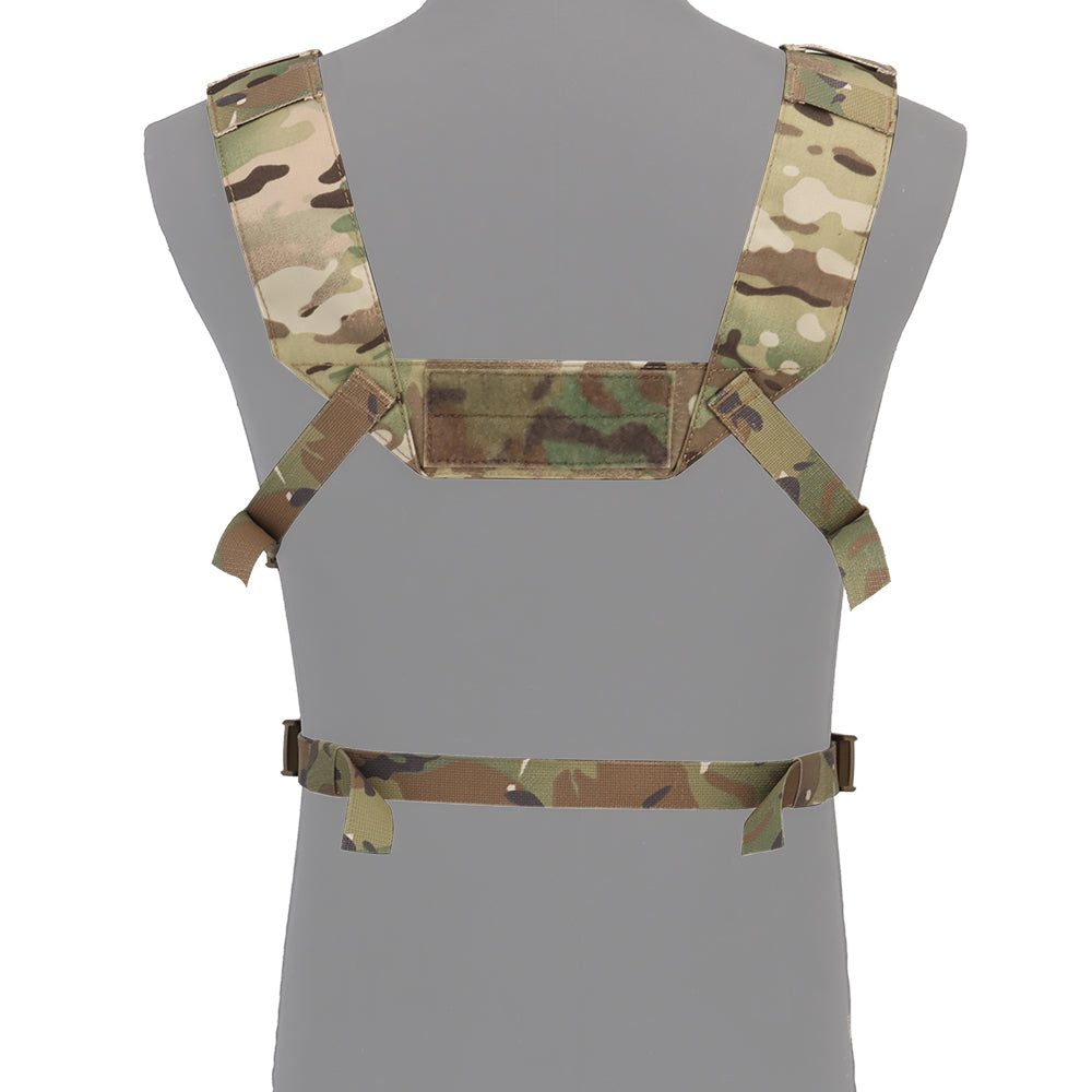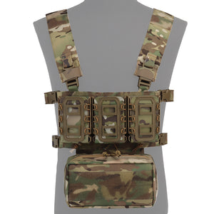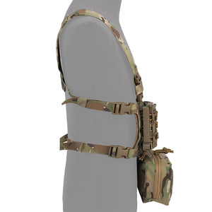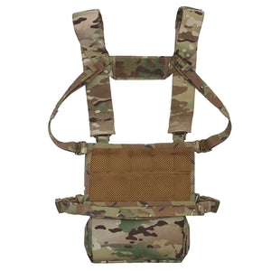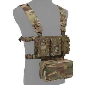 This lightweight chest rig system is ideal for those seeking a minimalist style load carrying platform. Chest rig configuration allows for breathability while retaining a plate carrier like front storage. Included universal mag pouches are rubber coated for better retention and fits most 5.56 or 7.62 style magazines. Removable large sack pouch has built in zipper pockets and internal MOLLE.