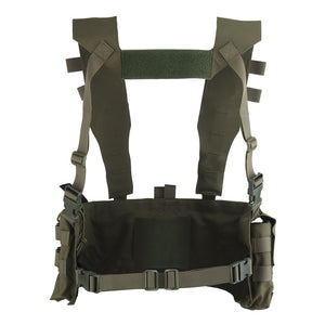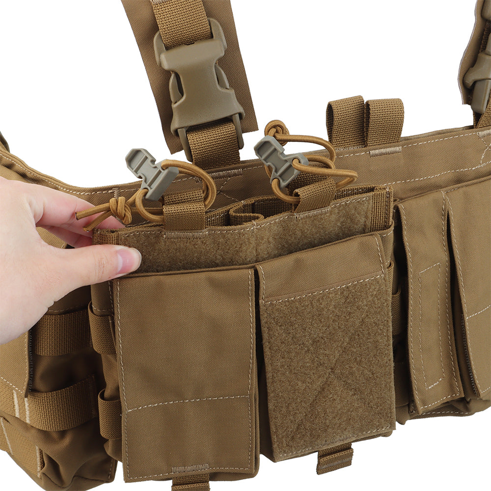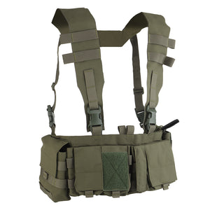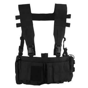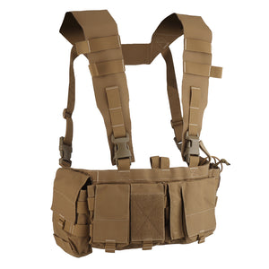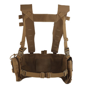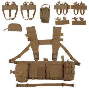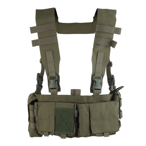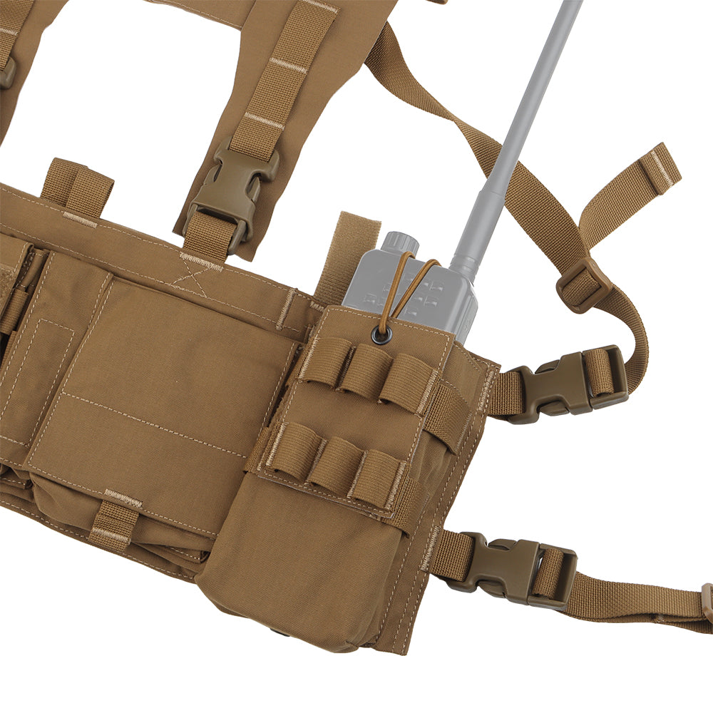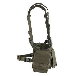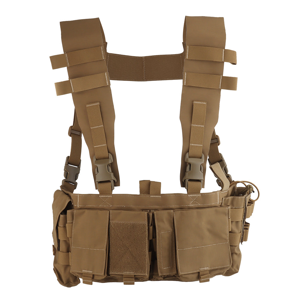 The UW Chest Rig The Pusher Gen VI is the ultimate load carriage solution, offering versatility for carrying essential gear including a radio, magazines, med kit, and more. Featuring a durable design with 3" wide shoulder straps and ITW-Nexus buckles, this rig ensures optimal body protection.