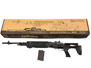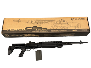 This M14 features the Enhanced Battle Rifle chassis (EBR) This is the full length, tactical version of a standard M14. It comes modernized with an adjustable stock & rails throughout for attachments. The body is constructed from solid metal which houses upgraded internal parts. Ideal for the user who likes a weighty feel and wants a high performing platform.