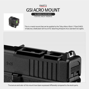 Upgrade your airsoft gameplay with the ACRO Mount for MARUI G17Gen5 MOS, specifically crafted for the Tokyo Marui Glock 5th Generation MOS.