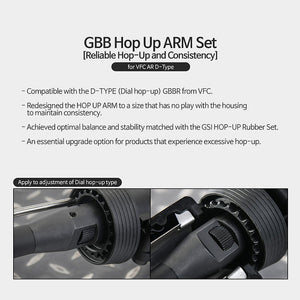 The GSI VFC AR D-Type Hop-Up Arm & Rubber Set is a premium upgrade designed to deliver exceptional value and enhance the shooting performance of your VFC AR series gas blowback rifles. This set provides stable and consistent trajectories, addressing common issues found in the stock hop-up system.