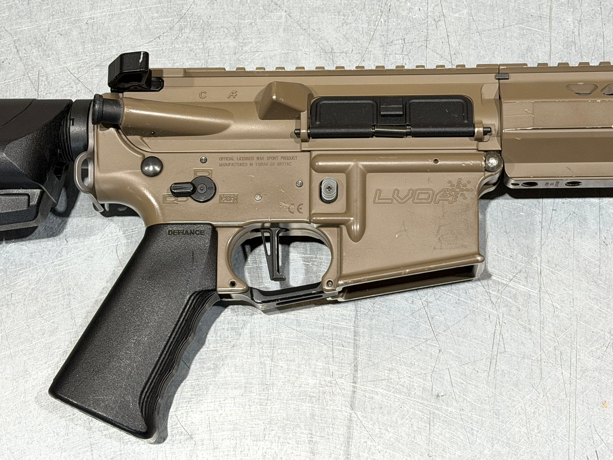 Condition: Used Like New - Minor external scratches on receiver and rail. Comes with Original Box. DOES NOT COME WITH MAGAZINE (Compatible with most V2 M4/M16 Mags) Internal gearbox is Umbrella Armories complete V2 with GATE TITAN Mosfet (Aftermarket).